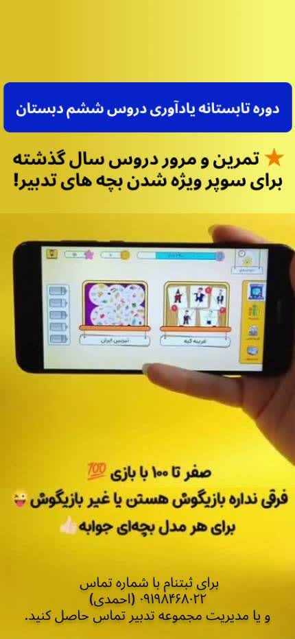 دوره تابستانه مرور دروس شش ساله و آمادگی برای پایه هفتم ویژه دانش آموزان دبیرستان تدبیر
